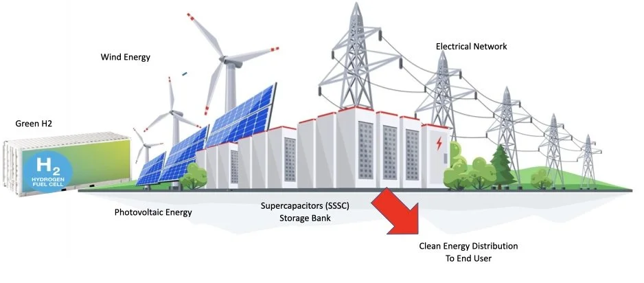 Our approach combines the high-energy density of supercapacitors with the clean energy potential of hydrogen. This synergy creates a powerful and versatile solution for energy storage and distribution.